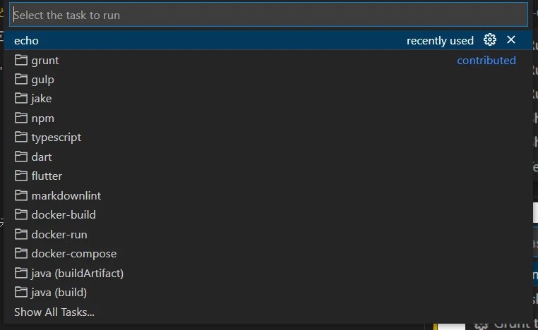 Ctrl + Pでコマンドパレットを開いて、Tasks: Run Taskを実行する。